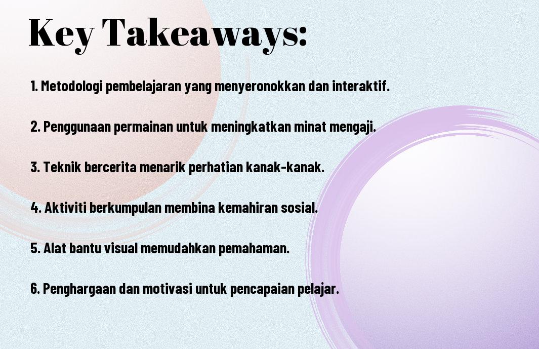 - Persekitaran yang menyeronokkan: Mewujudkan suasana yang mesra dan menyeronokkan membuatkan kanak-kanak lebih bersemangat untuk belajar dan kurang rasa tertekan.