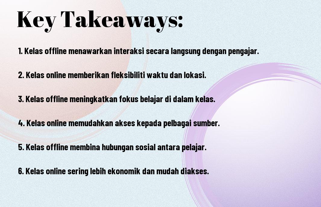 Selain itu, kita juga perlu menilai ketersediaan sumber yang ada. Untuk kelas offline, anda mungkin perlu pergi ke lokasi tertentu, sedangkan untuk kelas online, anda hanya memerlukan sambungan internet yang stabil. Memilih yang terbaik adalah tentang mencari keseimbangan antara keperluan peribadi dan suasana pembelajaran yang paling sesuai untuk anda.